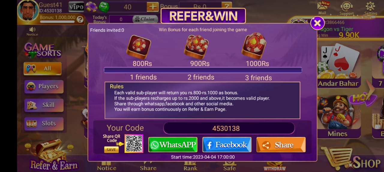 Ludo, Dice Roll, Crash Game, and Color Prediction are among the favorites that provide fun and easy gameplay with real prizes.